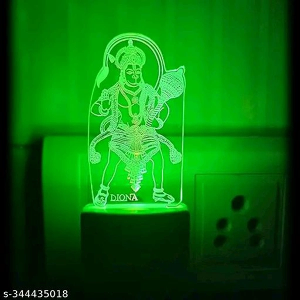 Diona offers a dedicated small portable 3D illusion LED night lamp that illuminates the interior with bright multi-color changing night lights. This sacred desk lamp has a beautiful image of GOD (Hanuman - Hanuman Parvat - Maruti - Balaji). This nightlight can be left in the place of worship to create a mysterious atmosphere. This lightweight wall night lamp is convenient to carry while traveling. What's more, this LED 7 color change night lamp can be easily installed in the corner of your home, office, bedroom, hotel, restaurant, etc ..... a place for beautiful lighting effects.