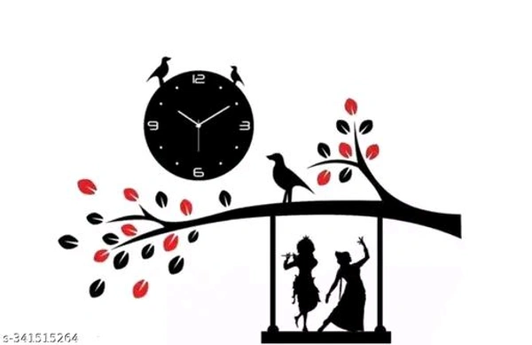 Lord Dancing Radha Krishna wall clock in wooden by leaser finish cut for your home and wall decor